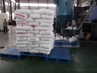 上圖為:托盤載重1500kg塑料原料模擬貨架實(shí)驗(yàn)狀態(tài),托盤下彎未超過2cm,實(shí)驗(yàn)效果很好。