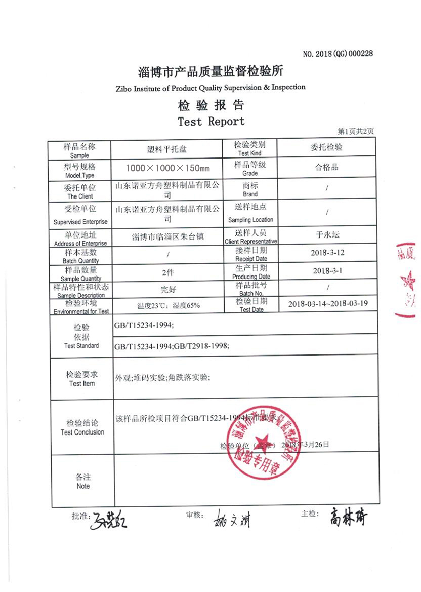 (塑料托盤質(zhì)檢報(bào)告)淄博市產(chǎn)品質(zhì)量監(jiān)督檢驗(yàn)所